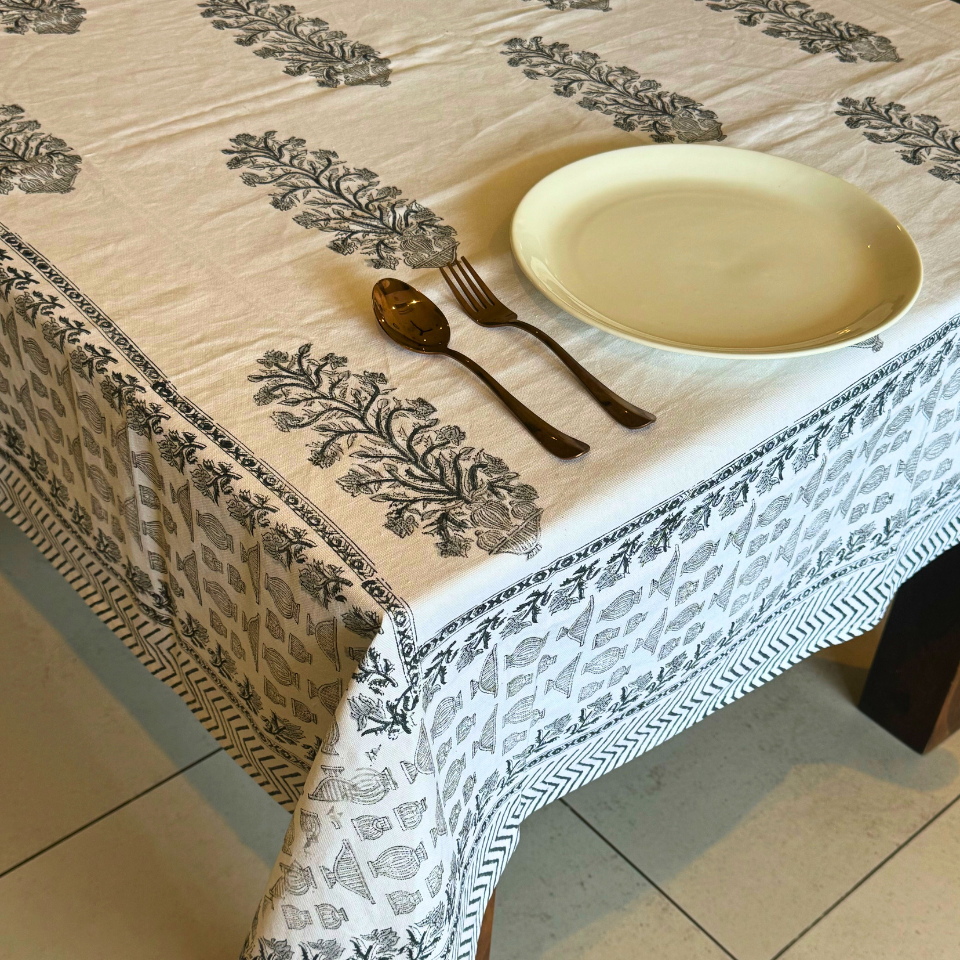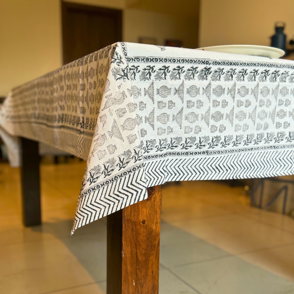 Transform your dining space with our exquisite Hand Block Printed Dining Table Cover, designed for a 6-seater table. Made from 100% pure cotton ideal for everyday use or special gatherings. Features:- 1) Material: 100%canvas cotton for a soft and breathable texture. 2) Design: Intricate hand block prints for a traditional, artistic touch. 3) Usage: Perfect for daily meals or hosting occasions. 4) Care: Easy to maintain (Machine Washable), ensuring long-lasting elegance.