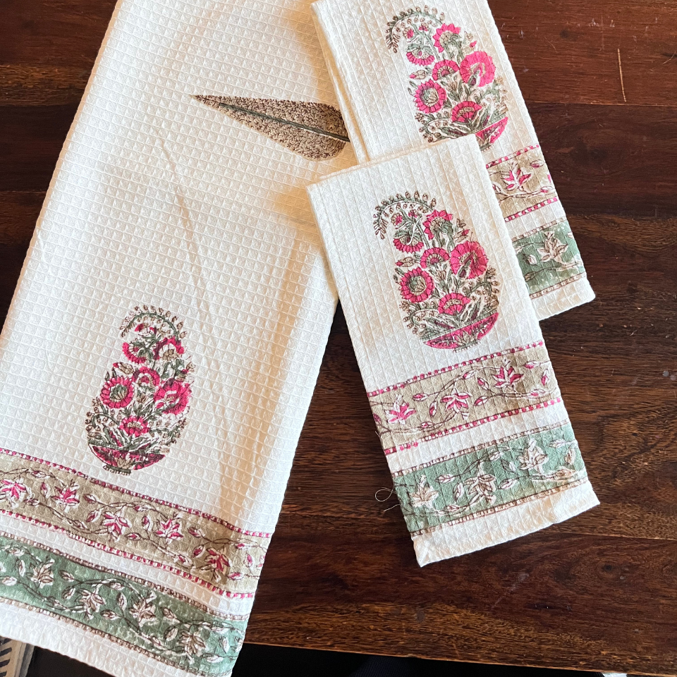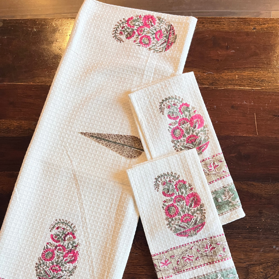 Hand Block Printed waffle bath towel . Made from premium waffle cotton fabric. Hand block printed with azo-free dyes. The waffle cotton fabric is absorbent and quick-drying, perfect for everyday use.