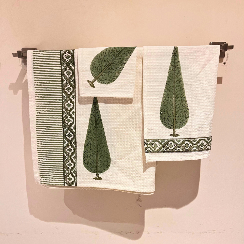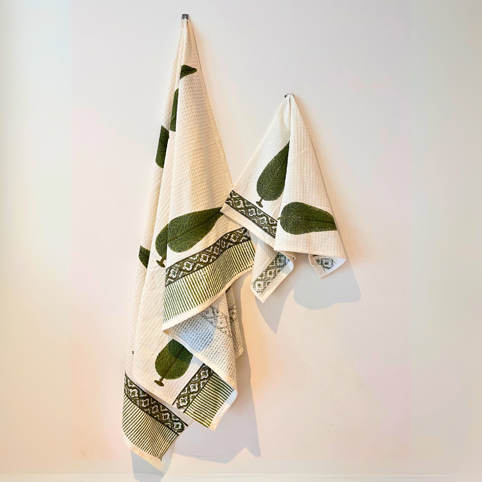 Hand Block Printed waffle bath towel . Made from premium waffle cotton fabric. Hand block printed with azo-free dyes. The waffle cotton fabric is absorbent and quick-drying, perfect for everyday use.